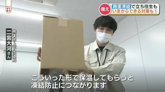 熊本市上下水道局 二宮 大河さん「こういった形で保温してもらうと、凍結防止につながります」