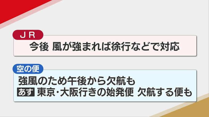 JRです。現時点で影響はありませんが今後、風が強まれば徐行などの対応を取るため列車に遅れが生じる可能性があります。