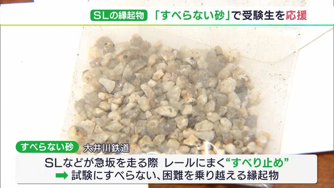 受験生を全力応援です。静岡県のローカル線「大井川鉄道」は1月24日、沿線の中学3年生に縁起物の「すべらない砂」をプレゼントしました。大井川鉄道から静岡県島田市の金谷中学校の受験生171人に贈られたのは「す…