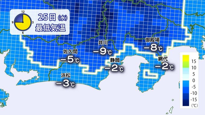 <田中健太郎気象予報士>最強の寒波が本格的にやって来ました。静岡県内では、山沿いを中心に積雪の恐れがあり、平野部でも今シーズン一番の寒さとなる見込みです。1月24日午後6時15分時点の雨雲レーダーの様子を…