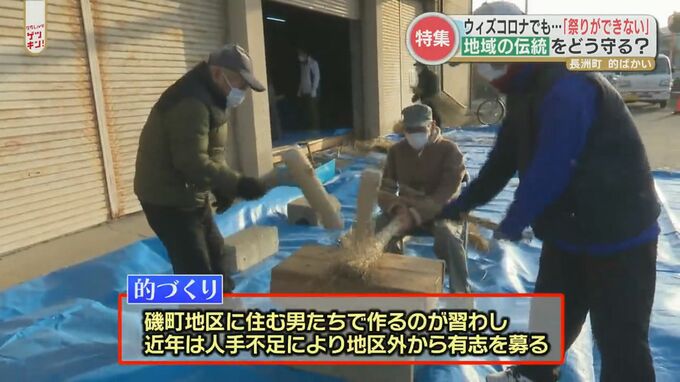 賑わう祭りの開催は見送ったものの、要望が高かった「的づくり」は再開することに。中心になるのは磯町地区の住民ですが、その作り方を細部まで覚えているのは90歳目前「米寿」の大ベテランだけです。