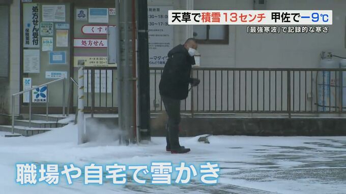 また、阿蘇地方でも雪が積もり朝から職場や自宅の雪かきをする人の姿も。