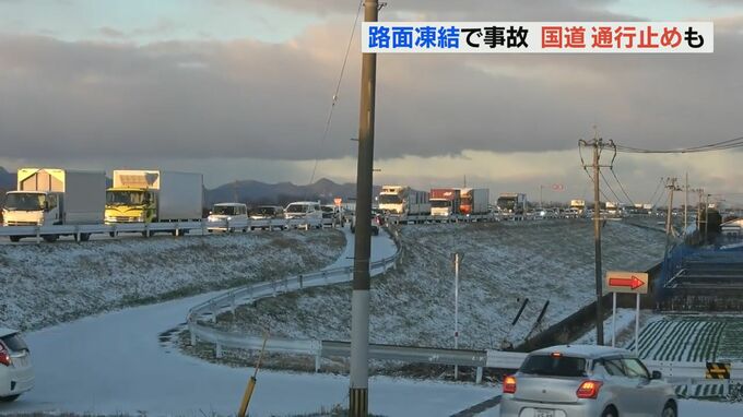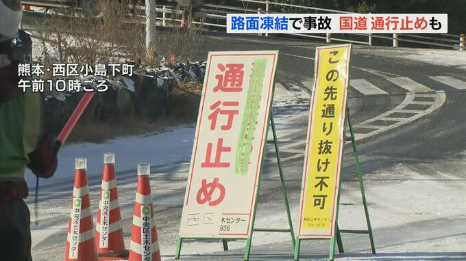 国道3号では、宇土市と宇城市の間で除雪作業のため未明から始まった通行止めが午前9時半まで続き、周辺の道路では広い範囲で渋滞が発生しています。