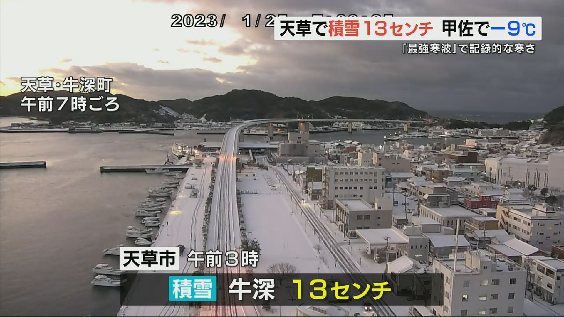 寒さも厳しく、25日の最低気温は甲佐町で氷点下9℃、天草市牛深で氷点下3.4℃と観測史上最も低い記録です。
