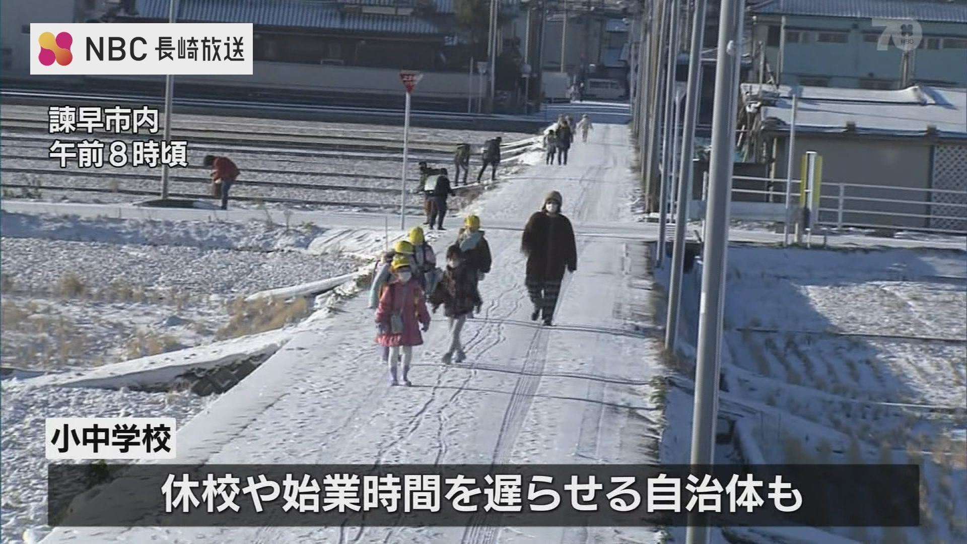 休校や始業時間を遅らせる自治体がある中、諫早市では雪の中、元気に通学する子供たちの姿が見られました。