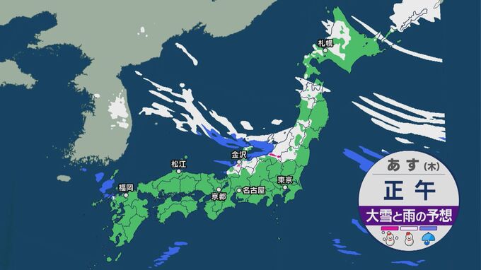 一方で、近畿から北の日本海側では明日にかけても大雪に警戒が必要です。また、普段雪の降らない東海地方でも、明日にかけてさらに雪が積もりそうです。