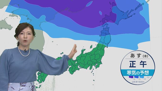 そして、この荒れた天気をもたらしている原因は、この10年に一度あるかないかの強い寒気なんですが、明日にかけてはいったん北上するんですが、週末にかけて、金曜日の夜から土曜日、この強い寒気が流れ込みます。今回ほどではないんですが、東日本や北日本では再び日本海側は大雪のおそれがありそうです。
