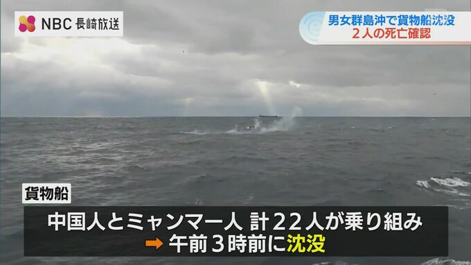 貨物船には中国人とミャンマー人あわせて22人が乗っていて、25日午前3時前に沈没。