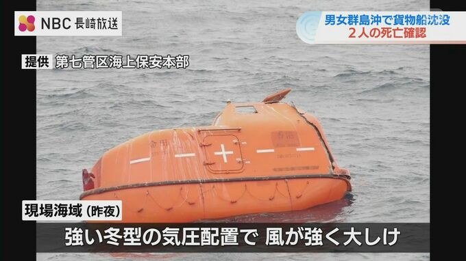 第七管区海上保安本部によりますと、24日夜11時すぎ「男女群島の西およそ110キロの海上で貨物船が傾いて浸水し救助を要請する」と、貨物船から七管本部に通報がありました。