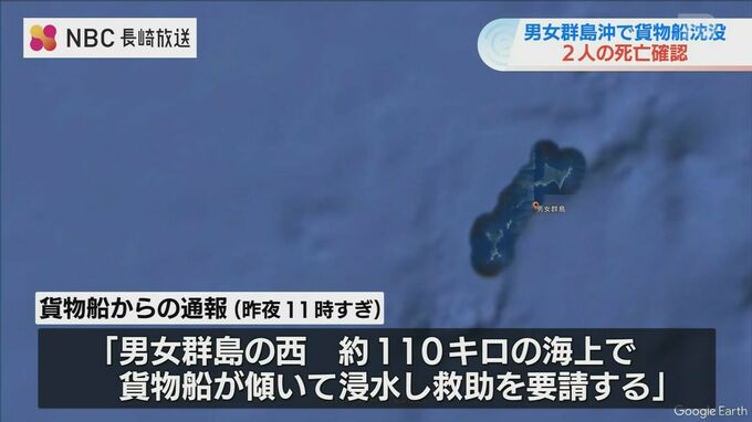 24日夜遅く、長崎県五島市の男女群島の西の海上で“香港船籍の貨物船”が浸水し、その後、沈没しました。