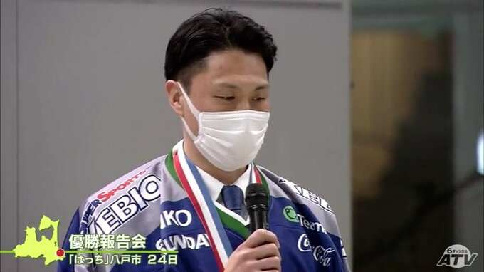 東北フリーブレイズが2022年12月のアイスホッケー全日本選手権で優勝を果たし、地元の八戸市でファンに報告しました。東北フリーブレイズは2022年12月18日に行われたアイスホッケー全日本選手権の決勝で「ひがし北…
