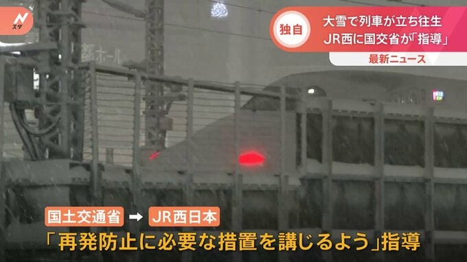大雪のためJR京都線などが長時間立ち往生した問題で、国土交通省が先ほど、JR西日本に対し、「再発防止に必要な措置を講じるよう」指導したことがわかりました。乗客を9時間以上乗せたままの列車もあったことから…