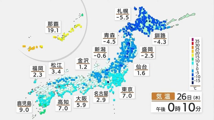 関東から九州、日差しが出ている太平洋側では、きょうは気温が上がっていますが、日中も10度に届かないところが多く、きのうよりはまだ寒さが和らぐんですが、この時期としてはまだ厳しい寒さが続きそうです。
