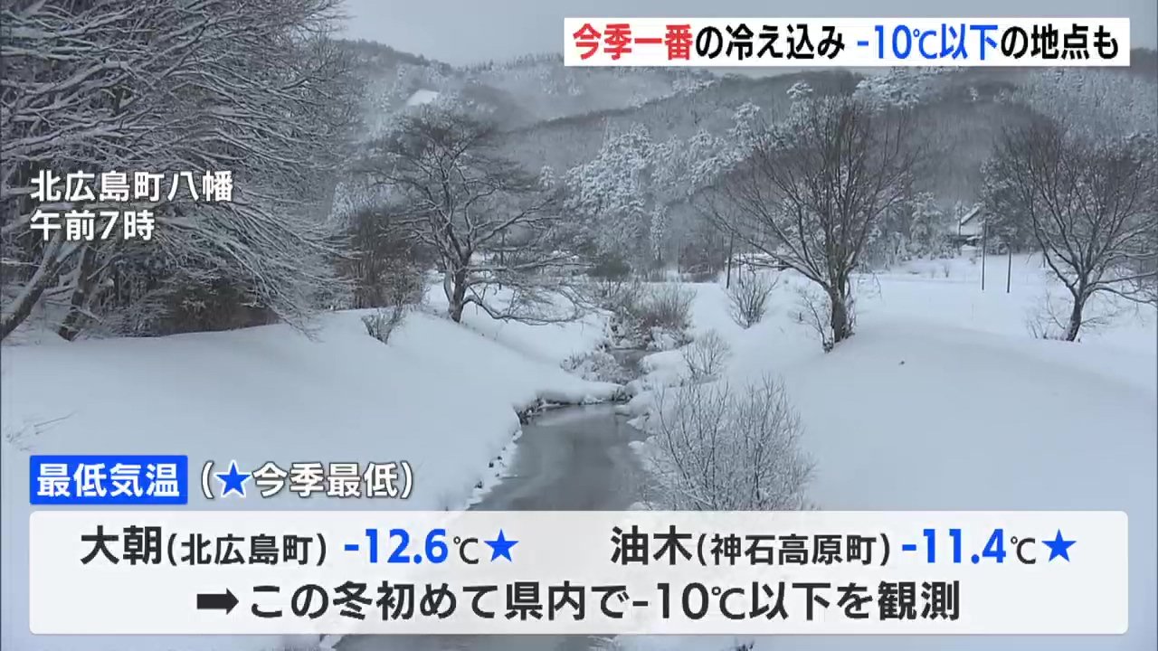 26日朝の県内各地の最低気温は、北部や内陸ではマイナス7℃からマイナス10℃近くまで下がり、この冬一番の厳しい冷え込みとなりました。