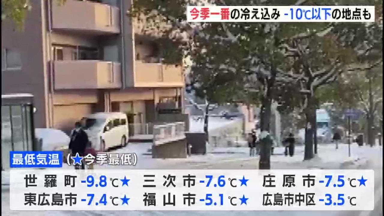 特に、山沿いでは北広島町大朝でマイナス12.6℃、神石高原町油木でマイナス11.4℃を観測。県内のアメダス観測点では、この冬初めてマイナス10℃を下回りました。