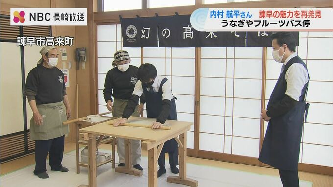 自身も魅力を知ろうと体験したのは、高来町の一部のみでしか栽培されていない『幻の高来そば』のそば打ち。