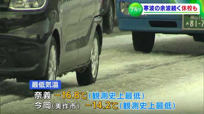 けさの最低気温は、奈義でマイナス16.8度、美作市の今岡でマイナス14.2度と、観測史上最低を記録するなど、各地で冷え込みました。