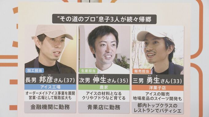 この3人が東京で何をしていたかというと、長男の邦彦さんは金融機関、次男の伸生さんは青果店で勤務。大学では農業も学んでいたということです。三男の勇生さんは都内トップクラスのレストランでパティシエをしていました。