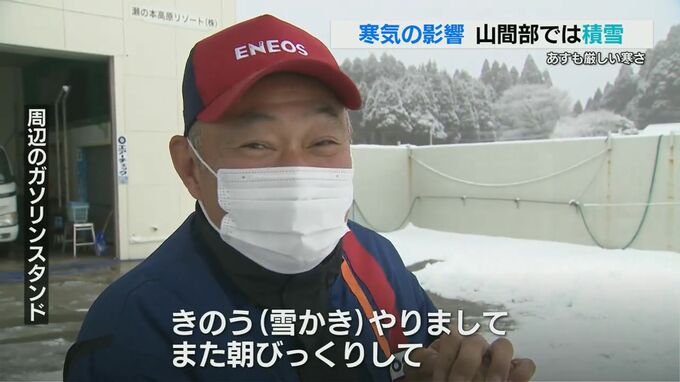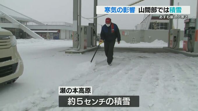 付近のガソリンスタンドの男性「昨日(雪かき)やりまして、また朝びっくりしてもう一回雪かきしています。もう一時の我慢です」
