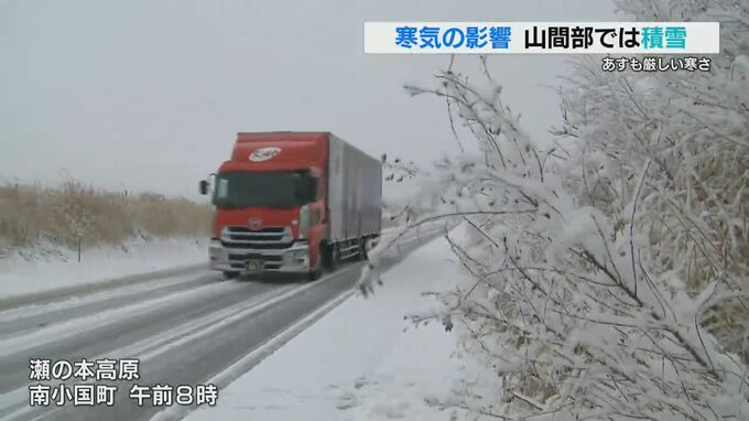 午後は次第に雪は止む見込みですが、県内は28日にかけて上空に強い寒気が流れ込み気温が下がるため、引き続き路面の凍結などに注意が必要です。