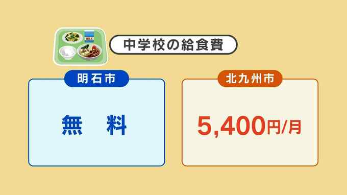 北九州市では、去年1月に中学生までだった助成対象を18歳まで拡大しました。ただ、通院については上限があるものの3歳から自己負担が発生します。また、北九州市では月5400円かかる中学校の給食費も明石市は無料です。
