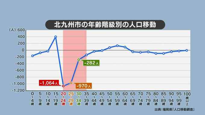 こうした声がある一方で、ファミリー層の人口流出には歯止めがかかりません。年齢別の人口移動の状況を見ると、20歳から34歳まで転出が転入を大きく上回っています。