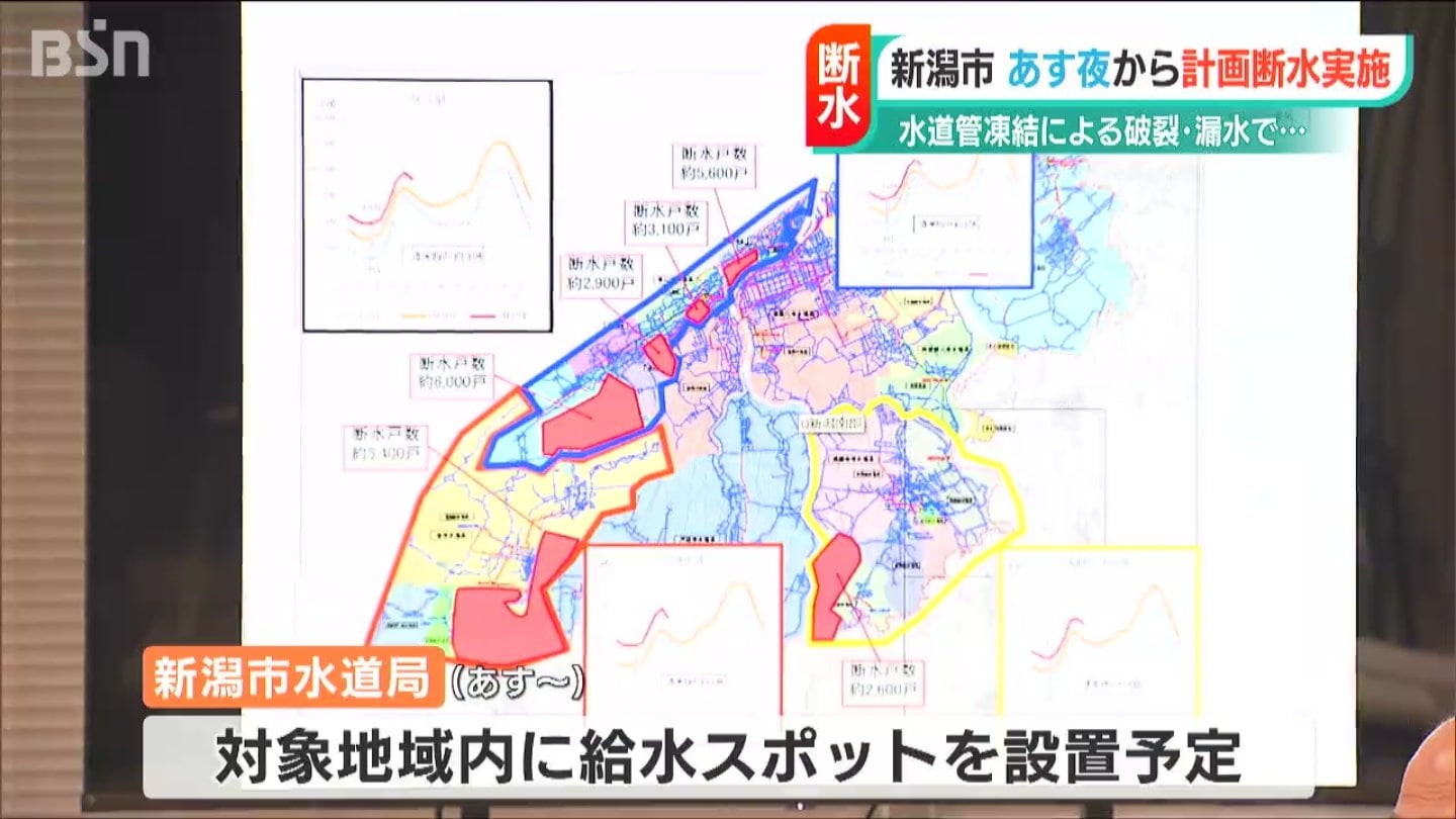 計画断水に伴い、新潟市水道局は対象地域内に給水スポットを設ける予定です。