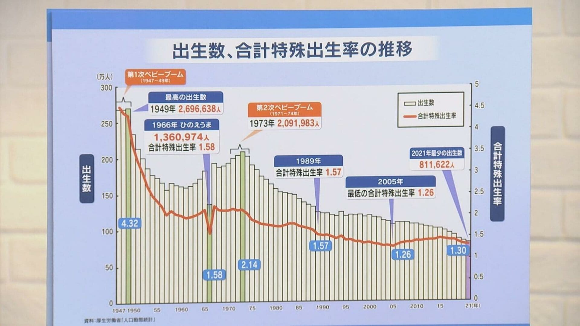 そのときの出生率が最低の1.26で、そこから緩やかに回復はして1.45まで回復したのですが、コロナ禍で様々な行動の制約があってまた出生率が低下してしまい、(出生数は)一昨年81万人で、昨年は80万人を切ってしまうと言われています。非常に深刻な状況であって、まさに少子化の骨格は真っ先に取り組まなければいけない重要課題になっているという思いを新たにしています。