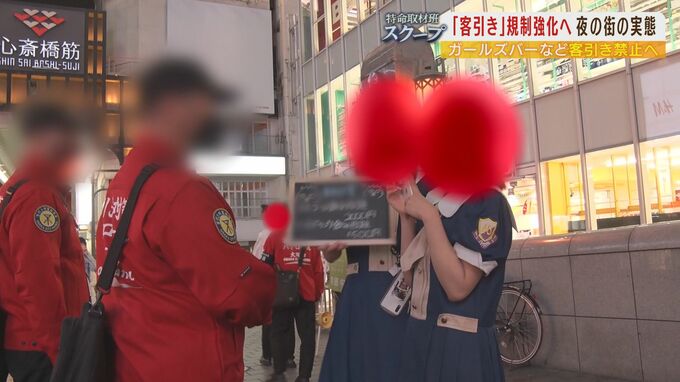 そんな中、商店街などを歩く赤い服をまとった大阪市の指導員が目を光らせているのは、違法な客引き行為だ。青いセーラー服に身を包んだ若い女性2人に指導員が話しかける。