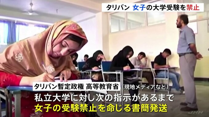 アフガニスタンのタリバン暫定政権は、私立大学に対し、女子が入学試験を受けることを禁止するよう指示した書簡を送りました。女性はさらに教育の機会を奪われることになります。現地メディアなどによりますと、タ…