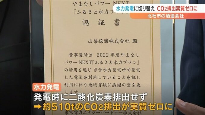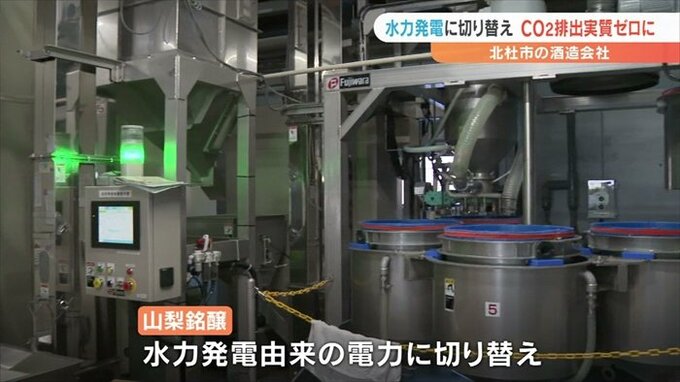 山梨県北杜市の酒造会社が、使用する全ての電力を水力発電由来のものに切り替えたと発表しました。