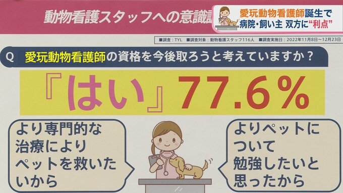 では、この「愛玩動物看護師」の資格、看護スタッフの皆さんは取ろうと考えているのでしょうか?TYLによる意識調査がありました。