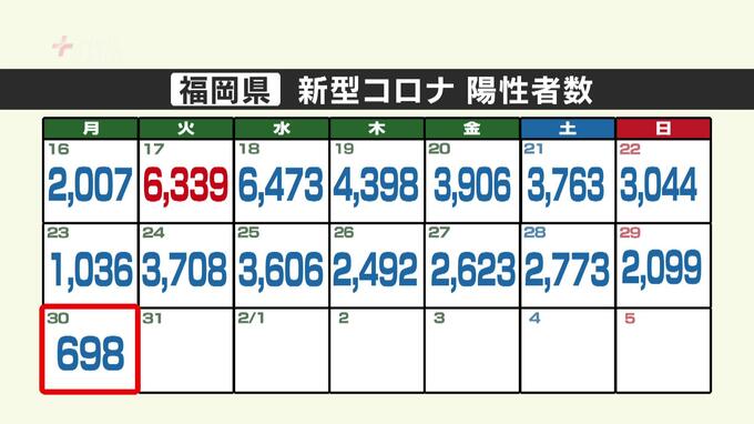 新型コロナウイルスの感染状況です。福岡県では30日、新たに698人の陽性を発表しました。1000人を下回るのは去年の11月21日以来となります。県内では60代以上の男女あわせて9人の死亡が確認さ…