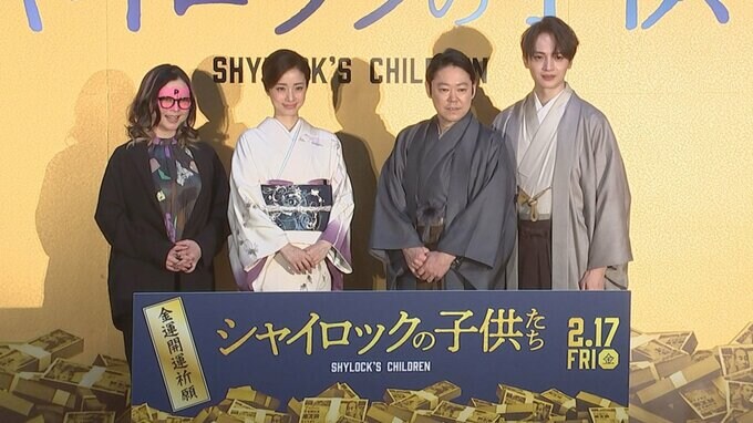 映画「シャイロックの子供たち」の公開直前イベントが行われ、阿部サダヲさん、上戸彩さん、Kis-My-Ft2玉森裕太さんが華やかな着物姿で登壇しました。