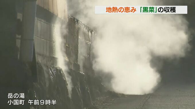 熊本県小国町の岳の湯地区では、温泉地熱で栽培される伝統野菜「黒菜(くろな)」の収穫が行われています。