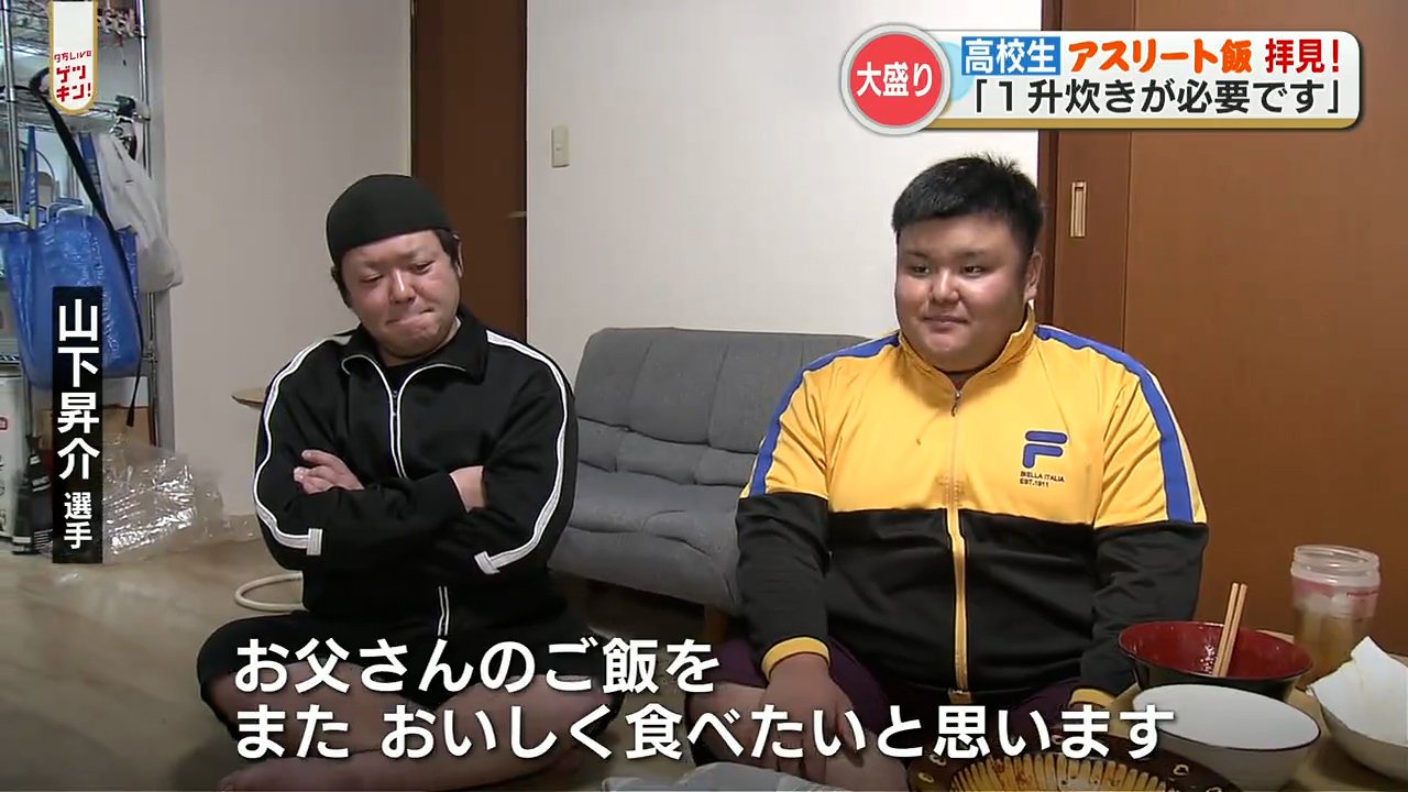 少しずつレパートリーを増やし「おふくろの味」ならぬ「おやじの味」で二人三脚。山下選手の体重は入学当初の123キロから152キロにまで増量しました。