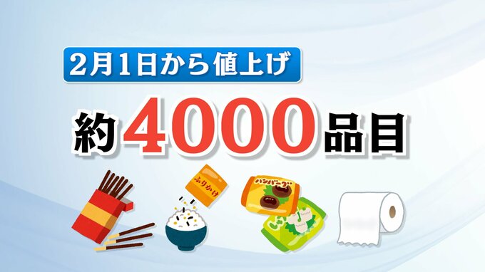 2月1日から値上げされるものは、およそ4000品目にのぼり、去年1月以降で2番目に多い品目数です。