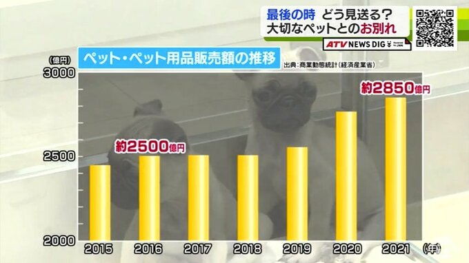 続いては、日常のさまざまな疑問を深堀りする「ATVNEWSDIG」です。コロナ禍でも販売額を伸ばしているペット産業。大切な家族の一員として過ごす中で、いつかは訪れるペットとのお別れの時について考えます。