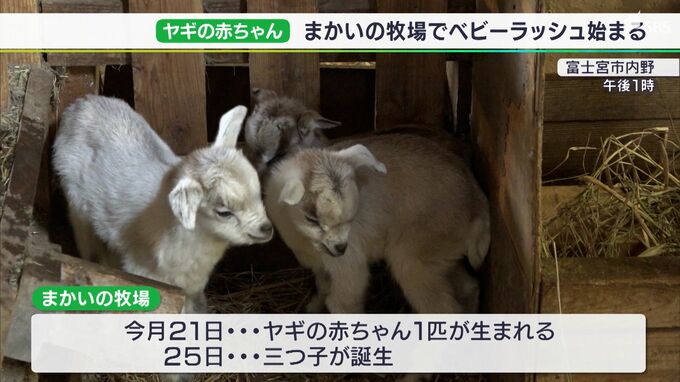 静岡県富士宮市にある「まかいの牧場」でベビーラッシュが始まり、ヤギの赤ちゃんがぬいぐるみのような愛くるしい姿を見せています。まかいの牧場では、1月21日にヤギの赤ちゃん1匹が生まれ、25日には三つ子が誕生…