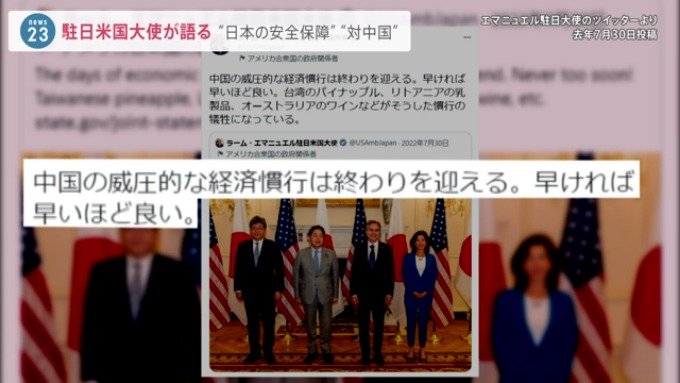 アメリカの政界で“剛腕”として知られているエマニュエル大使。つけられたニックネームは「ランボー」です。特に中国に対しては、たびたび厳しい見解を示してきました。