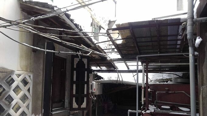 津山市によりますと、24日から25日にかけての大雪に伴う積雪で、雪の重みに耐え切れず26日の午後、2つの蔵の庇(ひさし)が破損したとみられています。音などは聞こえなかったということです。津山市では25日夜に観測史上最も多い46センチの積雪が観測されていました。