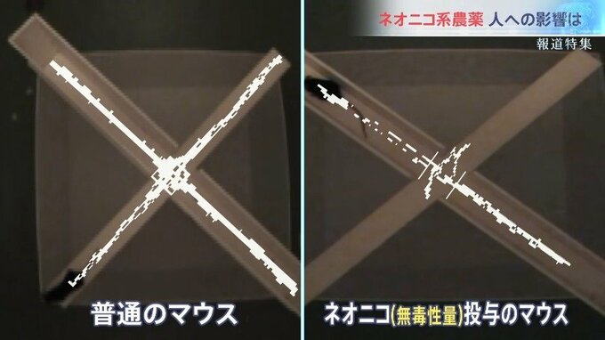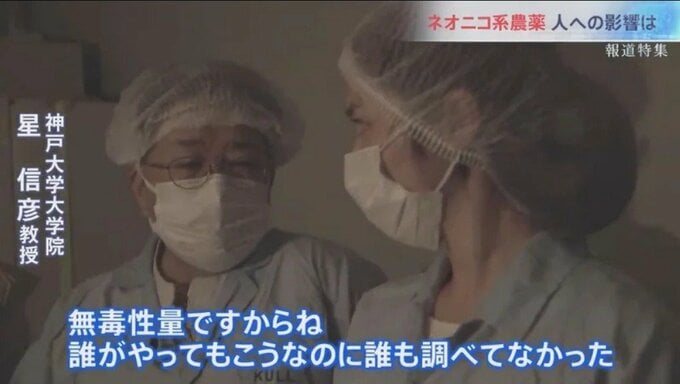 マウスの実験を通して、現行のネオニコの無毒性量に疑問を呈したのが神戸大学大学院の星信彦教授です。ネオニコが登録された際の毒性試験では、不安行動をしっかりチェックする試験が行われていなかったというのです。