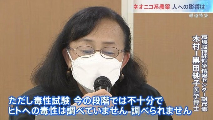 農薬工業会は、環境脳神経科学情報センター副代表・木村―黒田純子医学博士の2012年の論文についても、2015年に公表された総説で、「ネオニコチノイド系殺虫剤のいずれも発達神経毒性物質であることを示唆する影響は認められない」と評価されたことを述べました。
