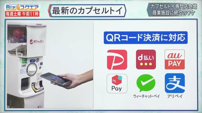 今、最新のカプセルトイにはQRコード決済に対応したマシンも登場している。ウィーチャットペイやアリペイなど外国人観光客も使えるように配慮されている。