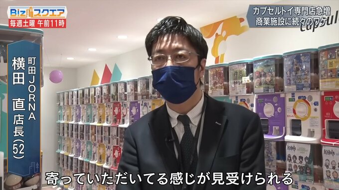 前店舗は女性向けのセルフエステの店舗でした。新型コロナウイルスの関係もあり、閉店になってしまったということです。それで、カプセルトイの専門店があるということで、これならお客様も楽しんでフロアを回遊してもらえるのではないかというところで決めさせてもらいました。我々が想定していた以上に女性が友達同士で来店され、違う店舗を見て寄っていただいている感じが見受けられます。