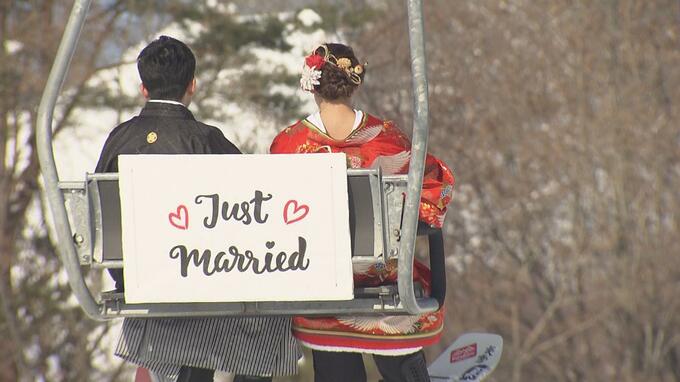 渡辺さん夫婦は青空の下、銀世界を楽しみながら、人生最高の瞬間を写真に残していました。