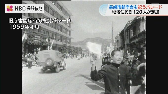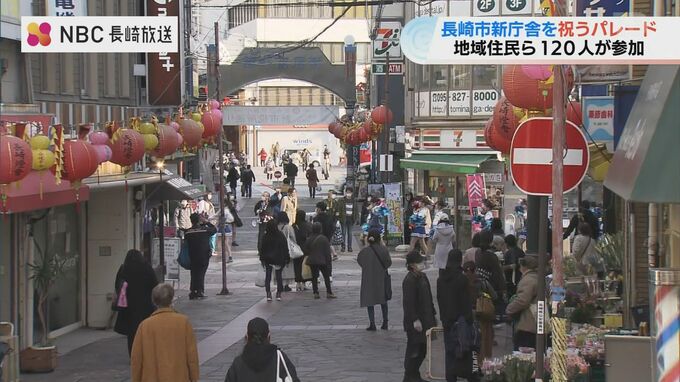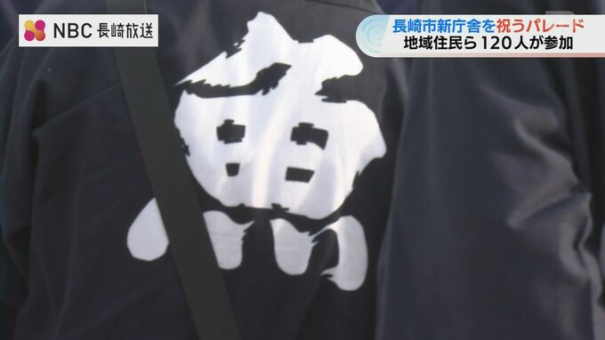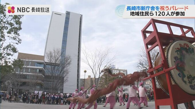 長崎市の新庁舎開庁を市民が祝う『祝賀パレード』が1日、行われ、龍踊を含めた総勢120人の一行が華やかに行進しました。