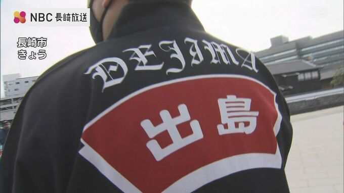 市内の高校の吹奏楽部と龍踊部も引き連れた総勢120人が出島から新庁舎まで行進しました。