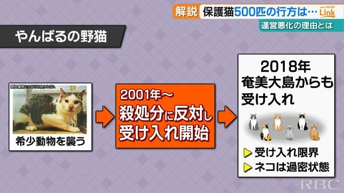 「動物たちを守る会ケルビム」によりますと、2001年ごろから県が希少動物を守るためノネコの捕獲と殺処分を行っていることに反対し、ノネコの受け入れを開始しました。