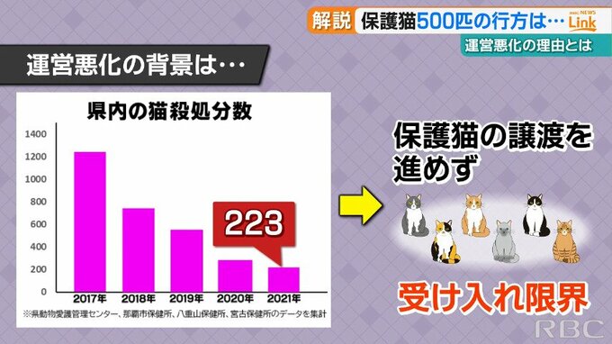 そもそも中村代表はなぜ、限界を超えた数の猫を受け入れざるを得なかったのか、そこにあるのは沖縄県内における猫の殺処分の現状です。